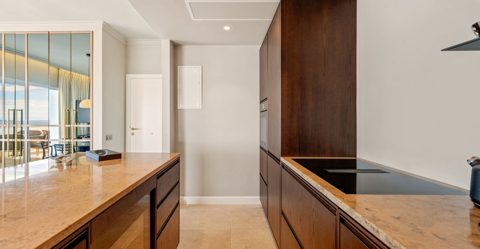 The interior has been completely redesigned with a contemporary layout and high-quality finishes throughout. The open-plan living and dining area connects seamlessly to the main terrace through large sliding glass doors, providing excellent natural light and a strong indoor–outdoor flow. The modern kitchen is fully fitted with integrated appliances and generous storage. The apartment offers multiple bedrooms with fitted wardrobes and direct or indirect terrace access, as well as elegant bathrooms with walk-in showers, natural stone finishes, and premium fittings.