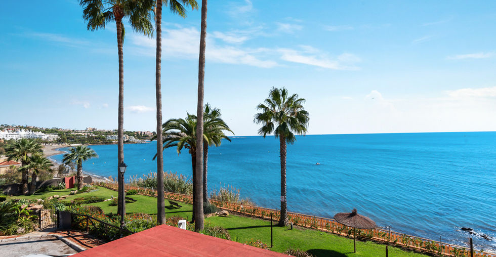 Beachfront townhouse located in Estepona, boasting incredible views of the Mediterranean, Estepona Port, Gibraltar and the African Coast. This south facing property has direct access to the beach and a newly constructed promenade facilitating leisurely strolls and cycling, along the coast. Estepona port is within walking distance as are supermarkets and shops.The main floor features an inviting entrance hallway and spacious living/dining area which seamlessly integrates with a fully equipped open-plan kitchen and direct access to a large terrace. The terrace is both covered and open with exceptional views of the coast.On the first floor you ́ll find the luxurious master bedroom complete with ensuite bathroom and dressing area, along with a guest bedroom and separate bathroom.On the lower floor there is another guest bedroom and bathroom, as well as two additional versatile rooms that can be used as an extra bedroom, office or entertainment space. The property includes 1 designated parking space for added convenience. Residents of this community can enjoy 2 communal pools and well maintained, lush gardens.
